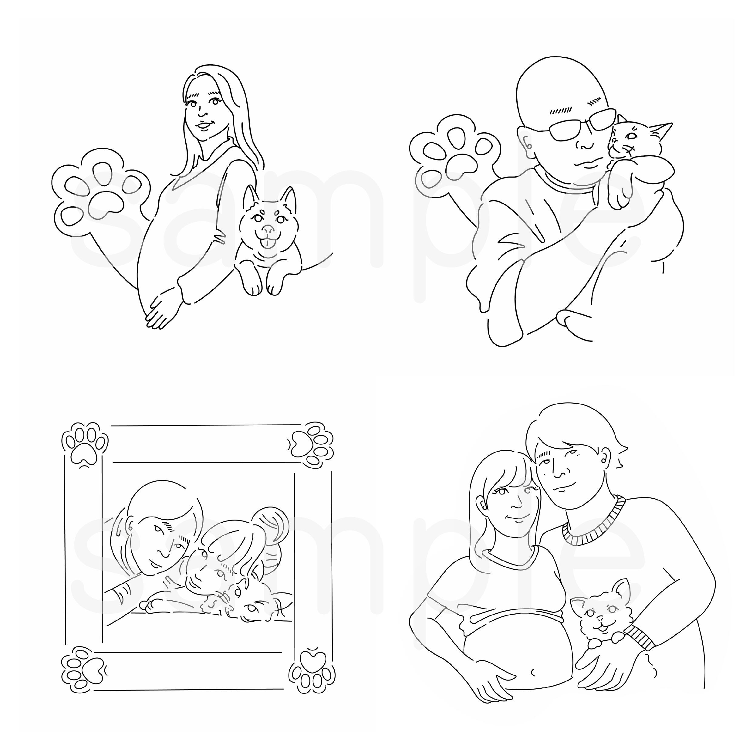 人物+動物(3対象まで)モノクロ
